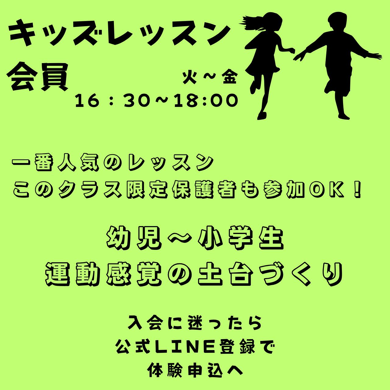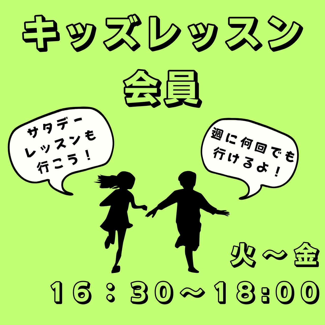 火〜金16:30〜18:00のキッズレッスンと土10:30〜11:30のサタデーレッスンが参加できる会員プランです。